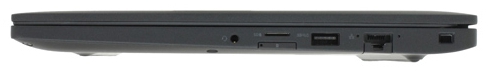 На правой стороне можно увидеть еще один USB 3.0, сетевой разъем RJ-45, кардридер, читающий карты памяти формата SD, комбинированный аудиоджек. Дополнительно здесь есть слот для SIM-карты, а также Nobel Wedge.