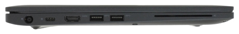 В ноутбуке разъемами заполнены исключительно боковые грани, оптический привод в конфигурации отсутствует. Слева предусмотрено два порта USB 3.0 (один с функцией подзарядки), USB Type-C/Thunderbolt, цифровой видеовыход HDMI, гнездо для зарядки ноутбука и слот для смарт-карт.