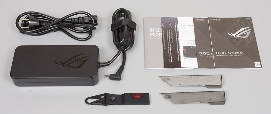 Относительно моделей ROG Strix Scar в прошлом году внешнее оформление несколько изменилось. На крышке исчез точечный узор, вместо которого сейчас присутствует диагональная полоса с маленькими логотипами ROG, и слегка изменился основной логотип с подсветкой.