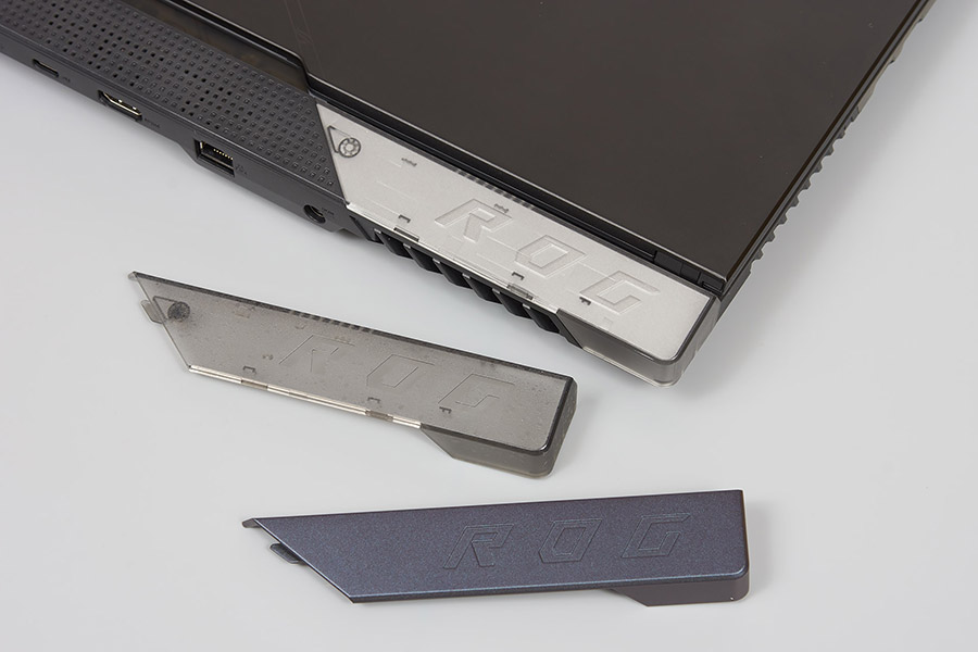 Декоративные накладки легко заменяются, достаточно их потянуть в сторону и вверх. Держатся они благодаря встроенным магнитам. Можно взять на сайте ASUS шаблоны и распечатать желаемые накладки, тем самым подчеркнув свою индивидуальность. Для дополнительной вентиляции у них есть несколько отверстий.