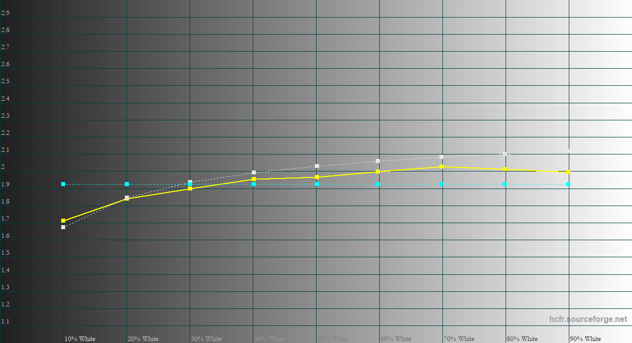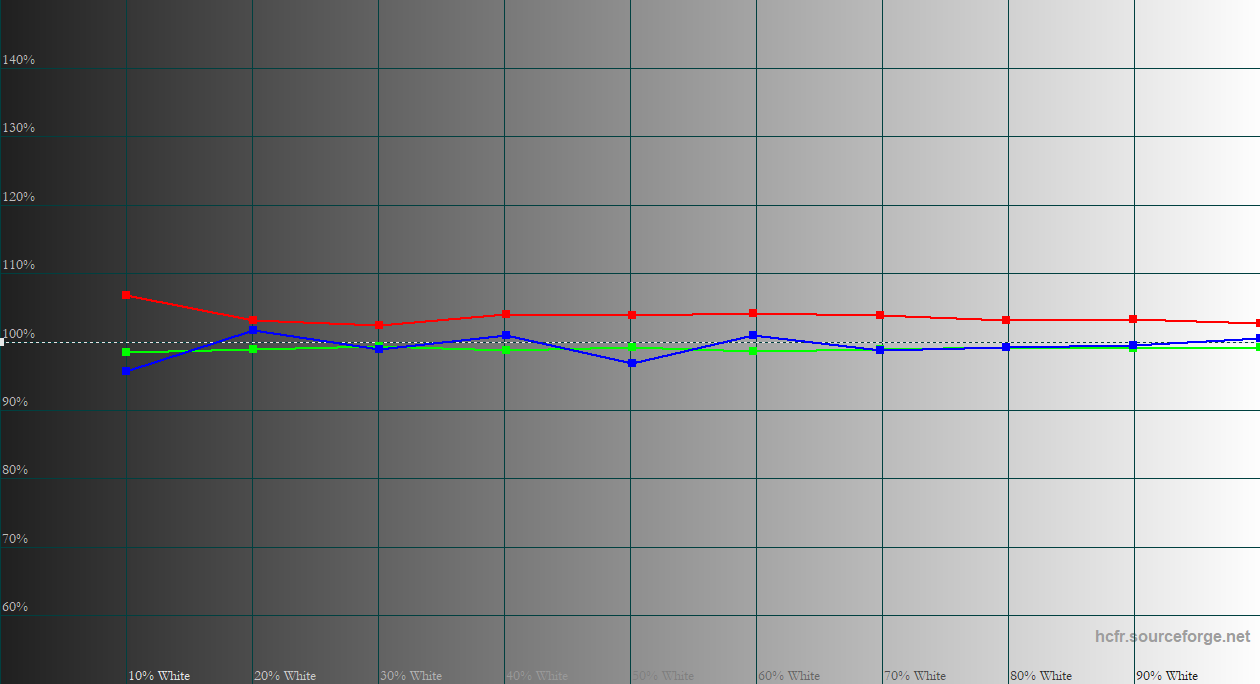 Экран обеспечивает достаточно точную цветопередачу со средним отклонением DeltaE менее 1.