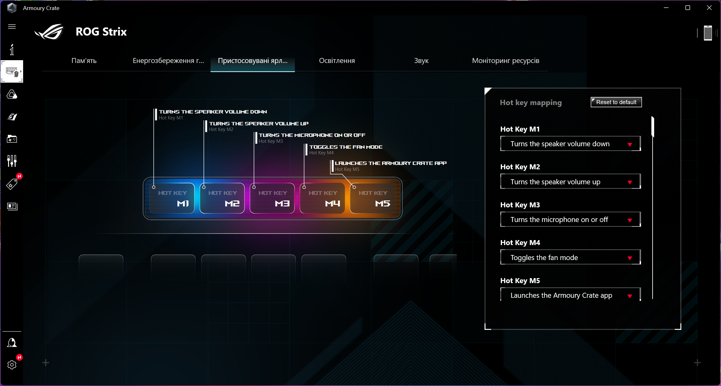 Функциональные кнопки сгруппированы для облегчения поиска нужной, а над ними расположился ряд дополнительных клавиш. Они служат для управления громкостью, включения микрофона, переключения режимов работы ноутбука и запуска утилиты Armoury Crate.