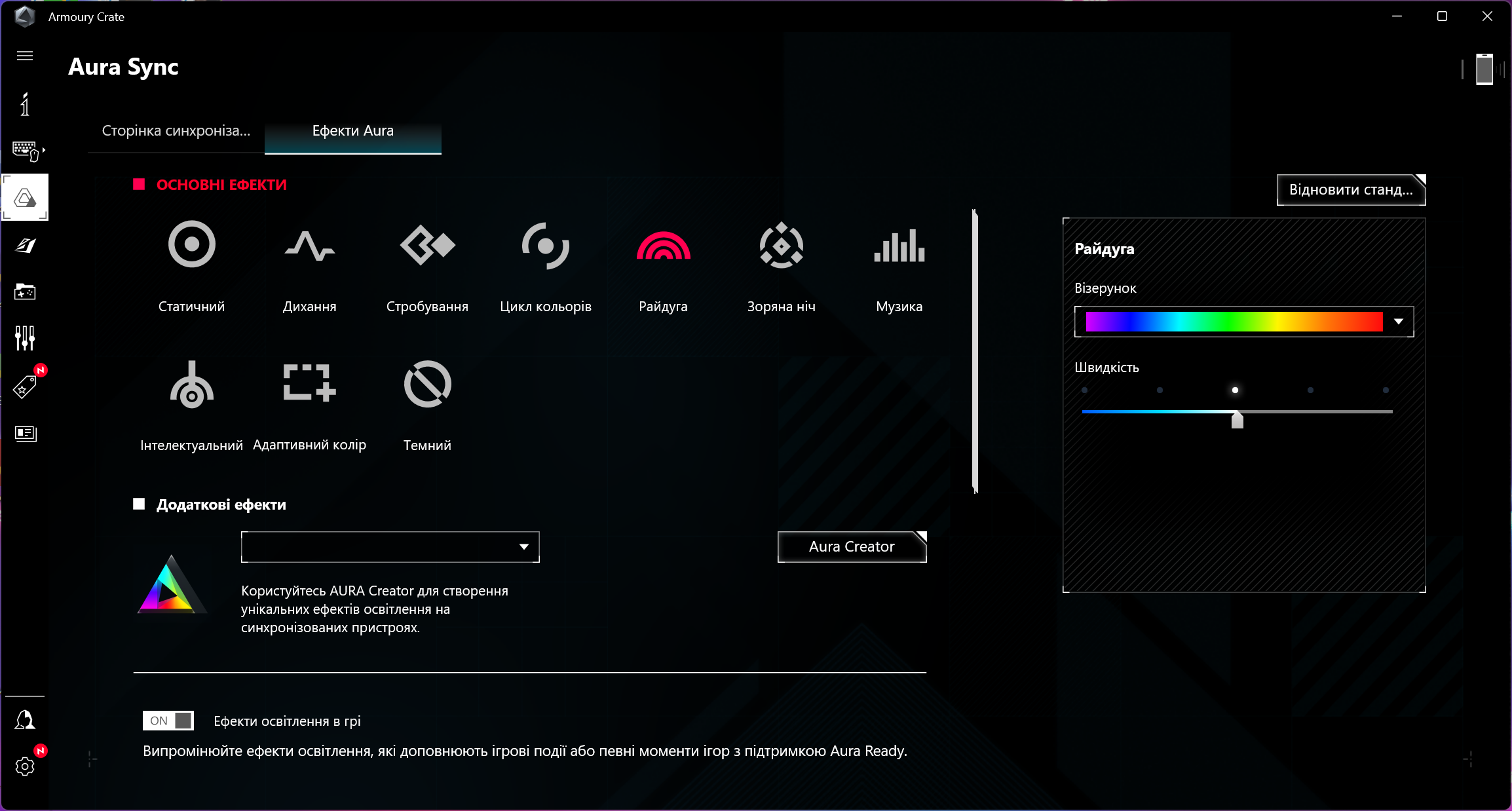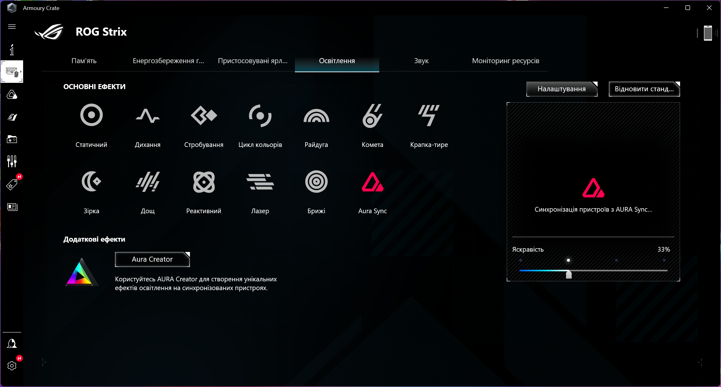 Для более тонких настроек подсветки предусмотрен раздел «Эффекты Aura» и Aura Creator.