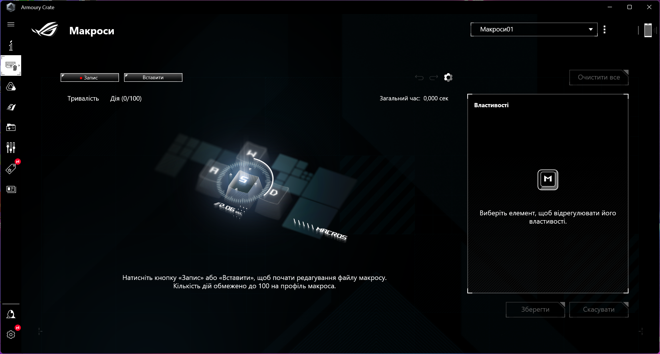 Сверху главного блока расположены вспомогательные клавиши, которые регулируют громкость, выключают микрофон, форсируют систему охлаждения и активируют фирменное приложение Armoury Crate.