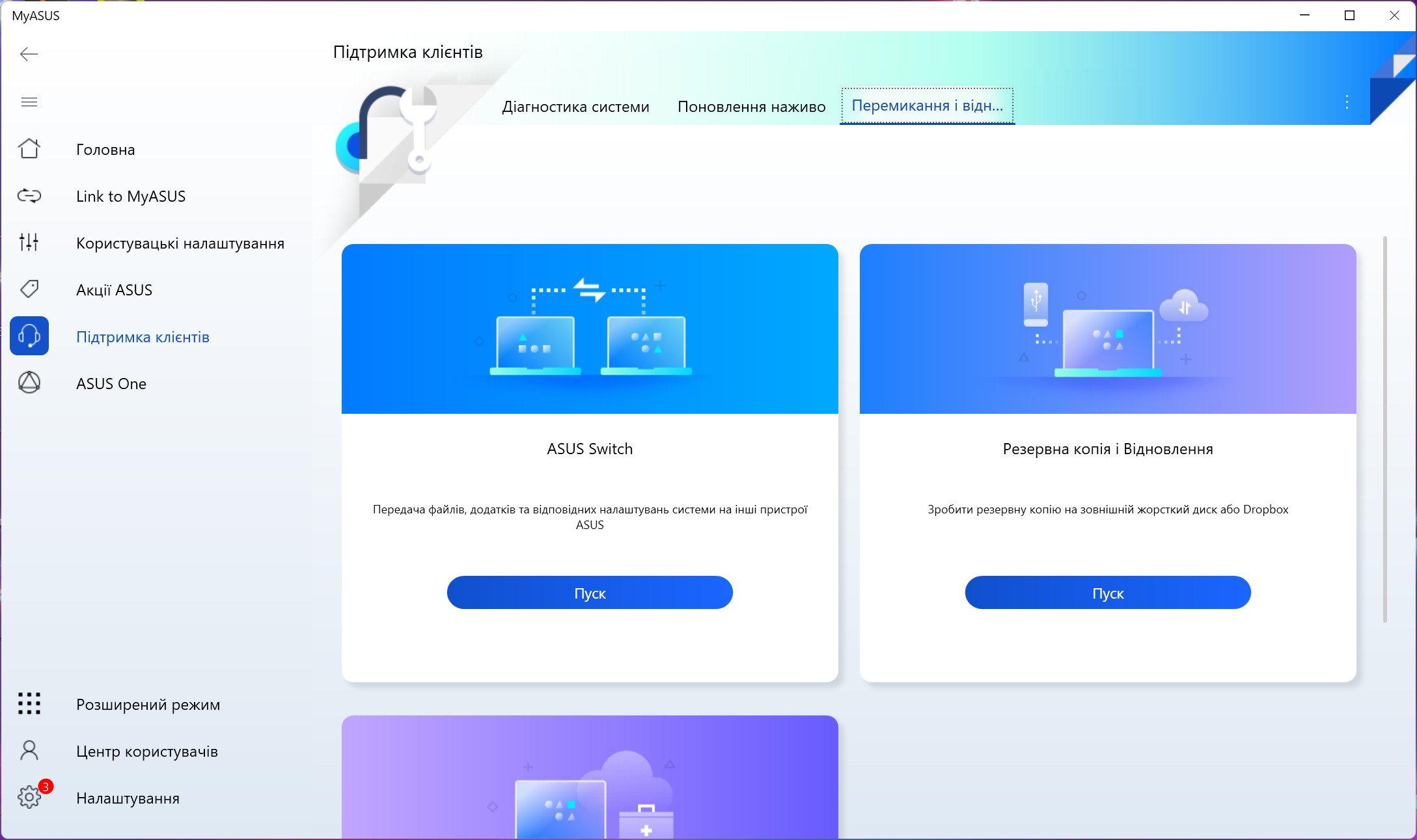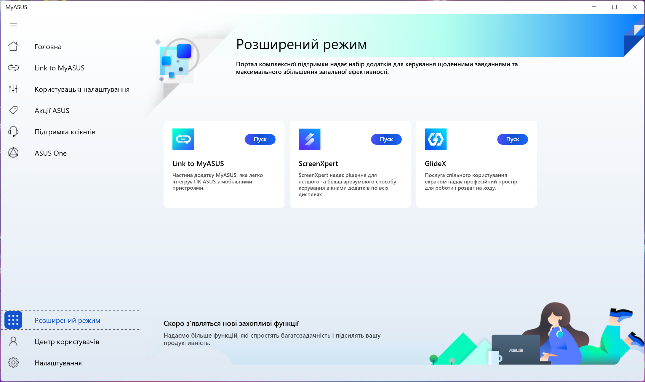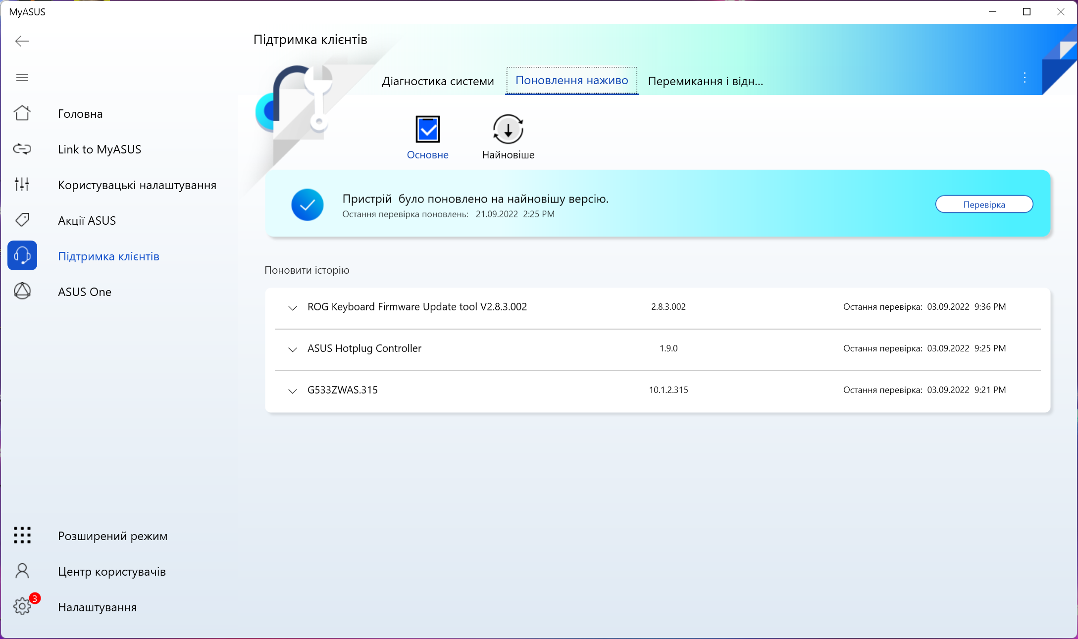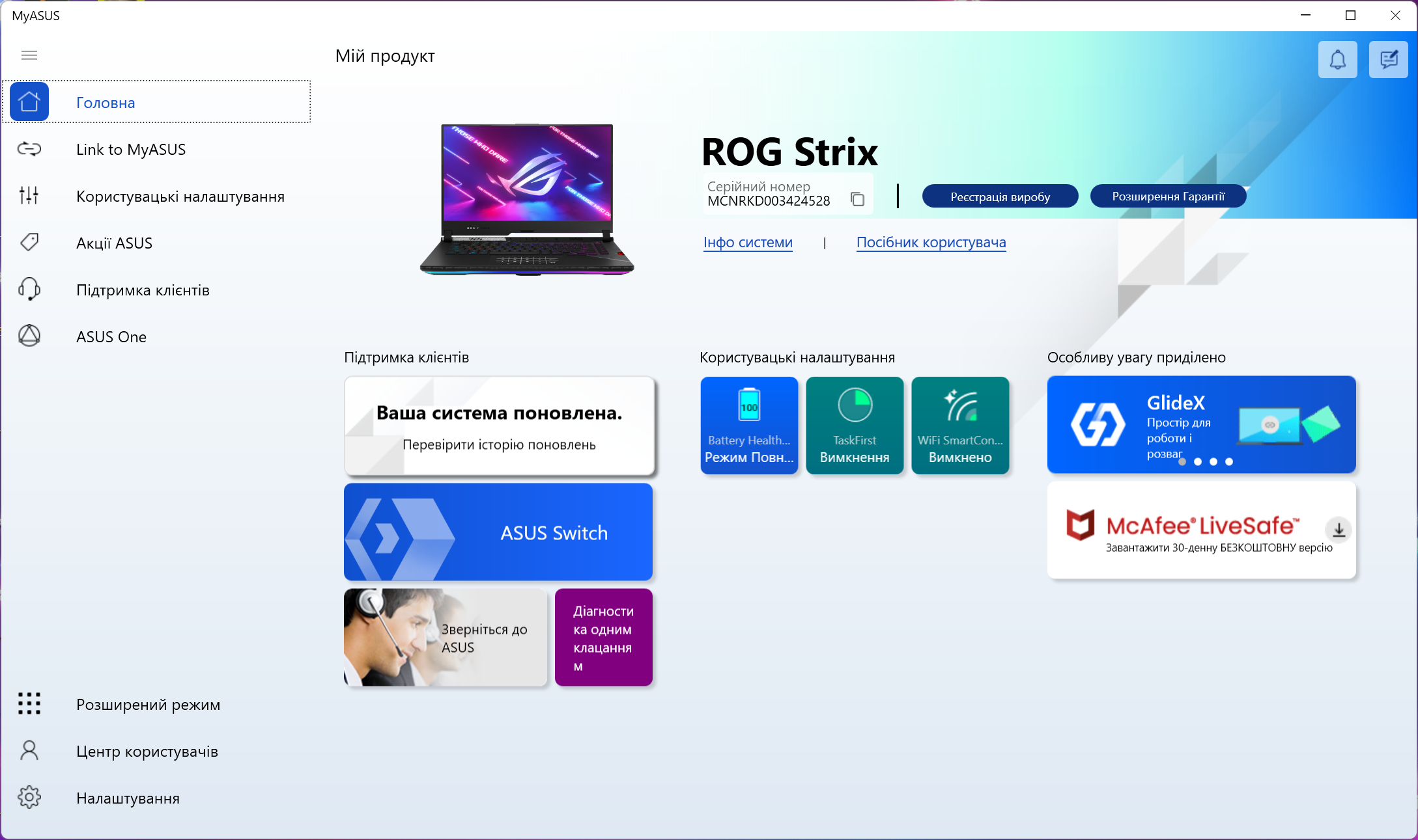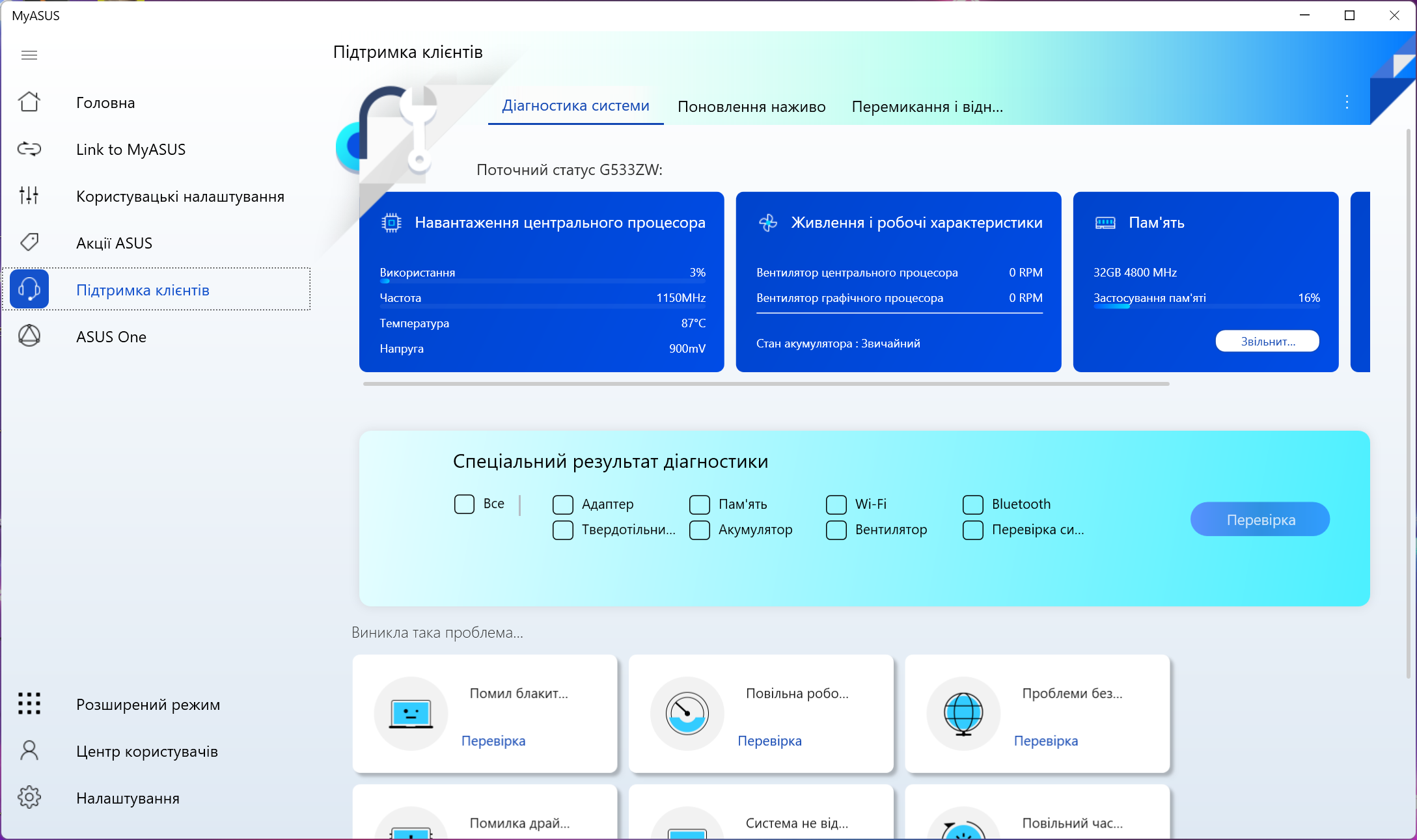 Следующее приложение, My ASUS, предназначено для диагностики, обновления ПО и связи с техподдержкой.